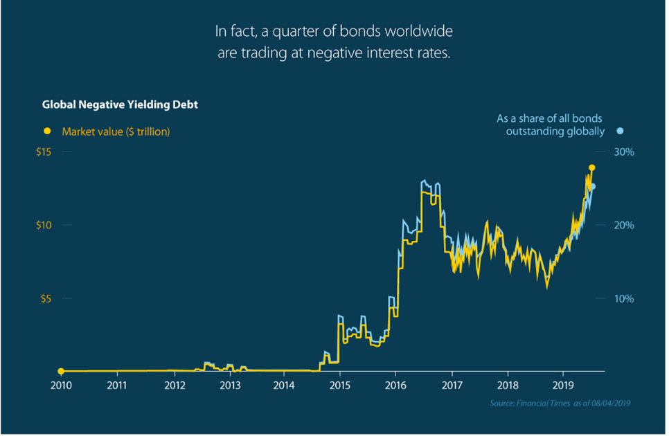 Der Anteil von Anleihen, die überhaupt keine Zinsen mehr bringen, am gesamten Anleihevolumen ist in den letzten Monaten ständig gestiegen.