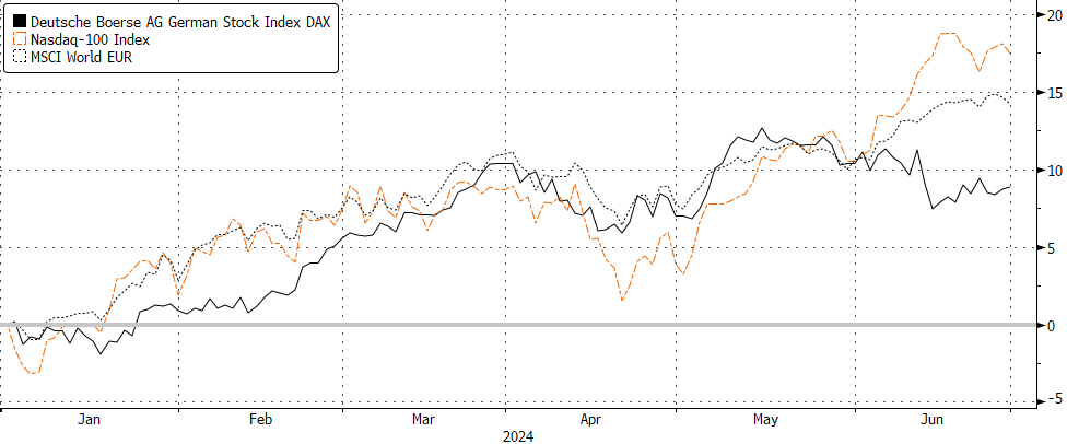 In unseren Strategischen Perspektiven zu Jahresbeginn haben wir die ganze Bandbreite der Prognosen für das Jahr 2024 dargestellt. Die pessimistischsten Prognosen haben damals mit einem Stand des DAX – Index von 15.400 Ende 2024 gerechnet, die optimistischsten dagegen mit einem Stand von 18.600. Von diesem Wert sind wir aktuell nicht allzu weit entfernt.