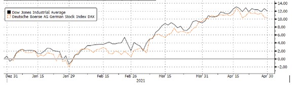Sowohl der Federal Reserve als auch der Europäischen Zentralbank kommt die steigende Inflation ziemlich ungelegen, sind doch beide derzeit mit Programmen zur Förderung der Wirtschaft befasst und haben deshalb die Zinsen extrem niedrig gehalten. Bisher haben beide an der Überzeugung festgehalten, dass die derzeitige Inflation nur ein vorübergehendes Phänomen sei und daher jetzt noch keine monetären Gegenmaßnahmen erforderlich seien. Die EZB prognostizierte sogar für 2022 eine Inflationsrate von 1,7 % und von 1,5 % für 2023. Das dürfte leider nicht mehr realistisch sein. Aber eine Zinserhöhung als Reaktion auf die steigenden Preise könnte den (Wieder)aufschwung in Frage stellen. Immerhin hat die FED gerade beschlossen, die monatlichen Anleihekäufe in der Höhe von nicht weniger als 120 Mrd. Dollar in den nächsten Monaten jeweils um 15 Mrd. Dollar zu verringern.