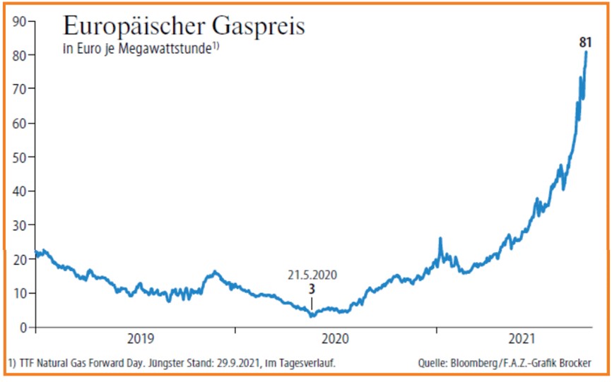 Eine besondere Rolle spielen derzeit die Energiepreise. Dabei sollte man aber unterscheiden: Die Erdölpreise sind hoch, aber einen Preis von über 80 $ je Barrel hat es schon vor sieben Jahren einmal gegeben. Hier hatten wir vielmehr einen heute zu wenig beachteten Preisdämpfungseffekt in der Zeit sinkender Ölpreise, der zu den unerwartet niedrigen Inflationsraten der vergangenen Jahre gar nicht so wenig beigetragen hat. Etwas anders steht es mit dem Gaspreis. Der ist geradezu explodiert.